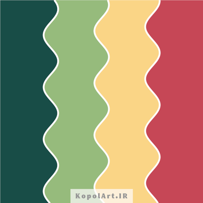 پالت رنگ سبز پستهای، قرمز آجری، سبز آووکادو و زرد نخودی