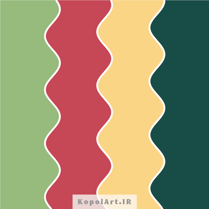 پالت رنگ سبز پستهای، قرمز آجری، سبز آووکادو و زرد نخودی