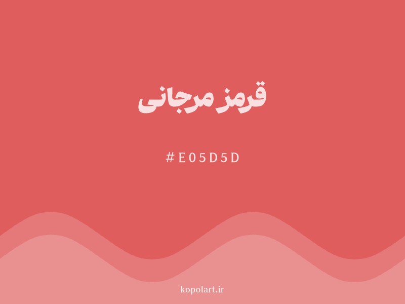 1401/03/07رنگ قرمز مرجانی E05D5D، ترکیبی از صورتی، نارنجی و قرمز است. این رنگ گرم و لطیف حس مهربانی و دوستی را القا کرده و با سبز نعنایی یا آبی روشن تضادی دلنشین دارد.