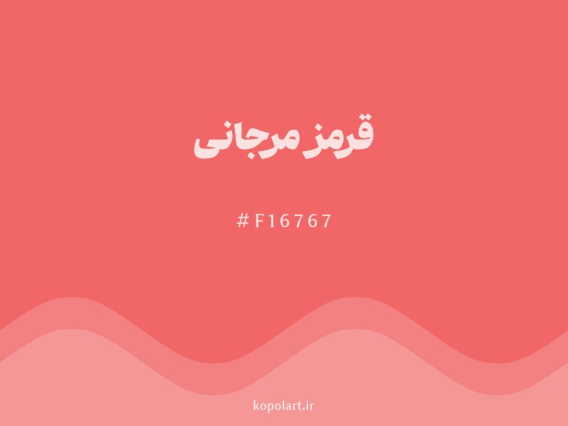 رنگ قرمز مرجانی با کد هگزادسیمال f16767، یک قرمز-نارنجی روشن و دوستانه است. این رنگ از ترکیب قرمز و نارنجی با افزودن مقداری سفید به دست آمده و نتیجه آن رنگی شاداب، گرم و پرانرژی است. این رنگ حس هیجان را به شیوهای کنترلشده و مثبت منتقل میکند و در طراحی رابط کاربری برای جلب توجه به عناصر خاص و همچنین در صنعت مد بسیار پرکاربرد است. ترکیب آن با رنگ فیروزهای روشن یا آبی آسمانی، تضادی زنده و دلنشین ایجاد میکند.