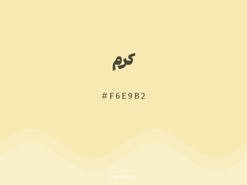 رنگ کرم با کد هگزادسیمال f6e9b2، یک زرد-بژ روشن و گرم است. این رنگ از ترکیب زرد با مقداری سفید و کمی قهوهای به دست آمده و یادآور رنگ شنهای ساحلی یا خمیر نان است. این رنگ حسی از راحتی، سادگی و گرما را منتقل میکند و به عنوان پسزمینهای گرم و خنثی در طراحی داخلی و وبسایتها بسیار پرکاربرد است. این رنگ به خوبی با رنگهای آبی تیره، سبز زیتونی و قهوهای شکلاتی هماهنگ میشود تا فضایی متعادل و شیک ایجاد کند.