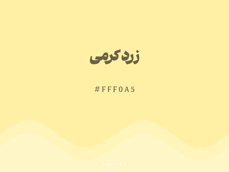 1401/05/31رنگ زرد کرمی fff0a5، یک زرد پاستلی و بسیار روشن است. این رنگ لطیف حس شادی و آرامش را منتقل کرده و برای طراحی محصولات کودک و بستهبندیهای شاداب مناسب است.