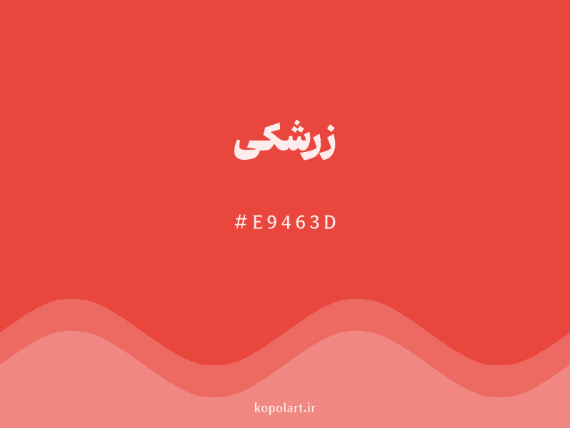 رنگ زرشکی با کد هگزادسیمال e9463d، یک قرمز مایل به نارنجی است که به آن قرمز مرجانی نیز میگویند. این رنگ از ترکیب قرمز با مقداری زرد و سفید به دست میآید و نتیجه آن رنگی گرم، زنده و دوستانه است. این رنگ انرژی قرمز را با شادابی نارنجی ترکیب کرده و حس شور و نشاط را منتقل میکند. در صنعت مد، دکوراسیون داخلی و طراحی گرافیک برای ایجاد فضایی پرانرژی و جذاب بسیار محبوب است. ترکیب آن با رنگ فیروزهای یا آبی روشن، کنتراستی تابستانی و چشمنواز ایجاد میکند.