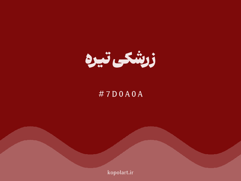 1402/10/11رنگ زرشکی تیره 7D0A0A، که به رنگ شرابی نزدیک است، نماد تجمل و قدرت است. این رنگ باوقار و کلاسیک در دکوراسیون فضاهای مجلل و صنعت مد کاربرد زیادی دارد.