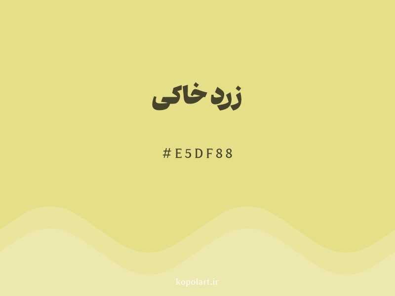 رنگ زرد خاکی با کد هگزادسیمال e5df88، یک سبز-زرد آرام و طبیعی است. این رنگ از ترکیب سبز و زرد با افزودن مقداری خاکستری به دست آمده و یادآور رنگ علف‌های خشک یا خزه است. این رنگ نماد طبیعت، آرامش و هماهنگی است و حسی از سادگی و پختگی را منتقل می‌کند. در طراحی‌های با سبک روستیک و ارگانیک بسیار پرکاربرد است. این رنگ به زیبایی با رنگ‌های خاکی دیگر مانند قهوه‌ای و بژ و همچنین رنگ بنفش کم‌رنگ ترکیب می‌شود.