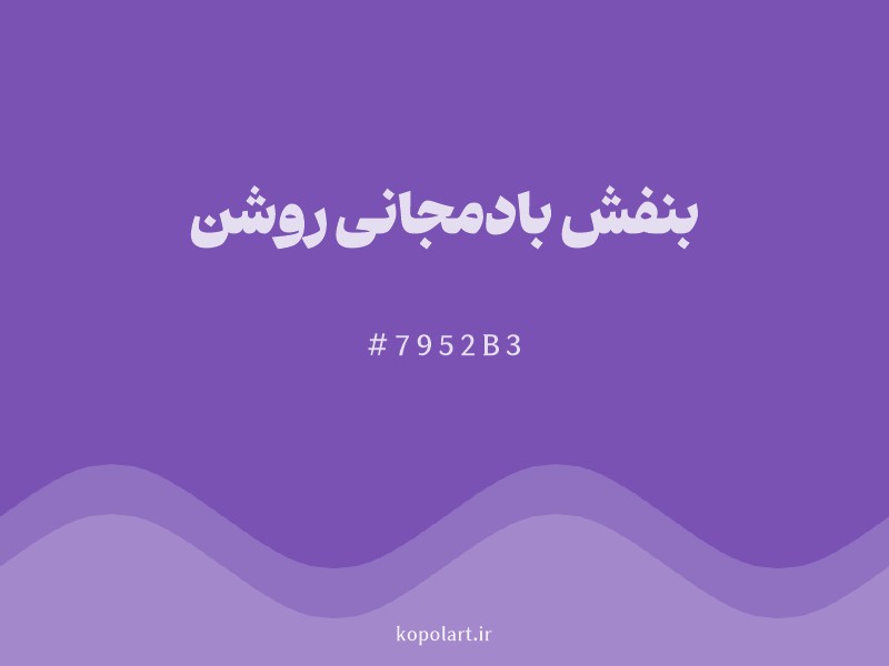 رنگ بنفش بادمجانی روشن با کد هگزادسیمال 7952b3، یک بنفش تیره و جذاب با ته رنگ آبی است. این رنگ از ترکیب بنفش با مقداری خاکستری یا مشکی به دست می‌آید و حس رمز و راز، تجمل و خلاقیت را منتقل می‌کند. بنفش بادمجانی روشن رنگی عمیق و باوقار است که در طراحی‌های لوکس، بسته‌بندی محصولات خاص و صنعت مد کاربرد دارد. این رنگ در کنار رنگ‌های سبز زیتونی، خردلی یا طلایی، ترکیبی بسیار شیک و هنری را به وجود می‌آورد و فضایی خاص و به یاد ماندنی ایجاد می‌کند.