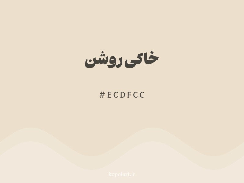 رنگ خاکی روشن با کد هگزادسیمال ecdfcc از ترکیب بژ، قهوهای روشن و اندکی سبز ساخته میشود و حس طبیعی، آرامش و سادگی را القا میکند. رنگ مکمل آن آبی آسمانی ملایم است که تضادی آرامبخش ایجاد میکند. این رنگ در طراحی داخلی سبک بوهمی و روستیک، پوشاک کژوال، بستهبندی محصولات طبیعی، لوازم کمپینگ و طراحی گرافیکی مینیمال کاربرد دارد. رنگ خاکی در جهان نیز به همین نام پارسی شناخته میشود.