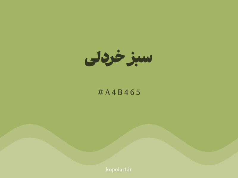 رنگ سبز خردلی با کد هگزادسیمال a4b465، یک سبز-زرد آرام و طبیعی است. این رنگ از ترکیب سبز و زرد با افزودن مقداری خاکستری به دست آمده و یادآور رنگ علف‌های خشک یا زیتون‌های نارس است. این رنگ نماد طبیعت، آرامش و هماهنگی است و حسی از سادگی و پختگی را منتقل می‌کند. در طراحی‌های با سبک روستیک و ارگانیک بسیار پرکاربرد است. این رنگ به زیبایی با رنگ‌های خاکی دیگر مانند قهوه‌ای و بژ و همچنین رنگ بنفش کم‌رنگ ترکیب می‌شود.