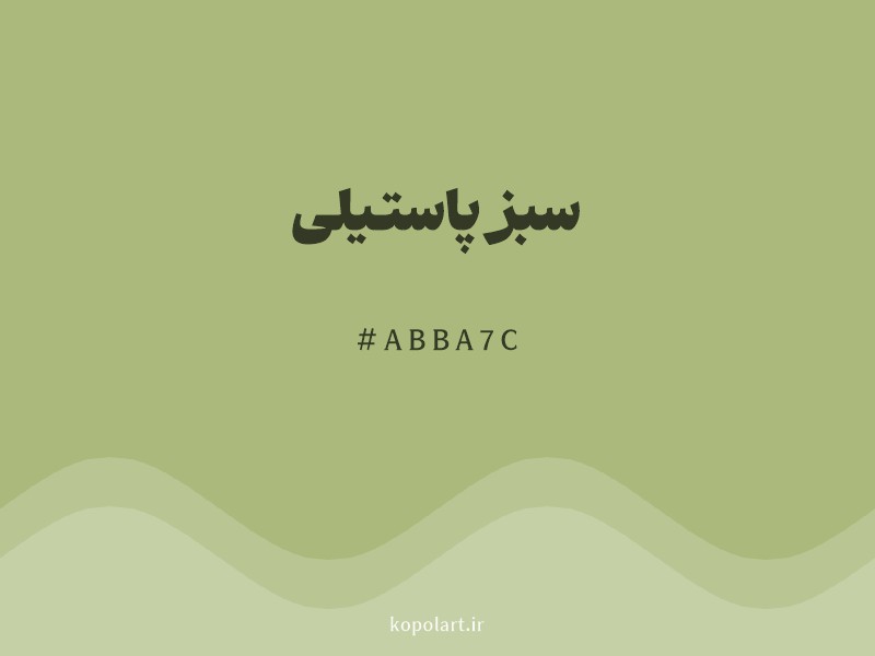 رنگ سبز پاستیلی با کد هگزادسیمال abba7c، یک سبز زیتونی روشن و آرام است. این رنگ از ترکیب سبز و زرد با افزودن مقداری سفید و خاکستری به دست آمده و نتیجه آن رنگی آرام، ملایم و طبیعی است. این رنگ حس آرامش، طبیعت و سادگی را منتقل میکند و در طراحیهای با سبک روستیک و وینتیج بسیار مناسب است. این رنگ به خوبی با رنگهای خاکی دیگر، مانند قهوهای و بژ، و همچنین رنگ صورتی چرک ترکیب میشود.