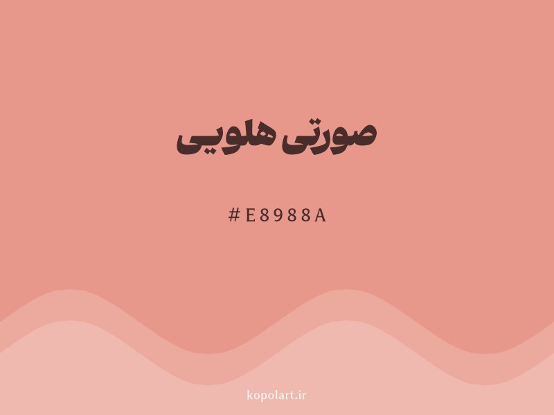 رنگ صورتی هلویی با کد هگزادسیمال e8988a، یک نارنجی-صورتی گرم و ملایم است. این رنگ از ترکیب نارنجی و صورتی با افزودن مقداری سفید به دست آمده و حسی از لطافت، دوستی و شیرینی را منتقل می‌کند. این رنگ یادآور میوه هلو و پوست شاداب است و می‌تواند فضایی آرام و دعوت‌کننده ایجاد کند. در طراحی داخلی، برندینگ محصولات آرایشی و بهداشتی و صنعت مد بسیار محبوب است. ترکیب آن با رنگ سبز نعنایی یا آبی روشن، تضادی شاداب و دلنشین ایجاد می‌کند.