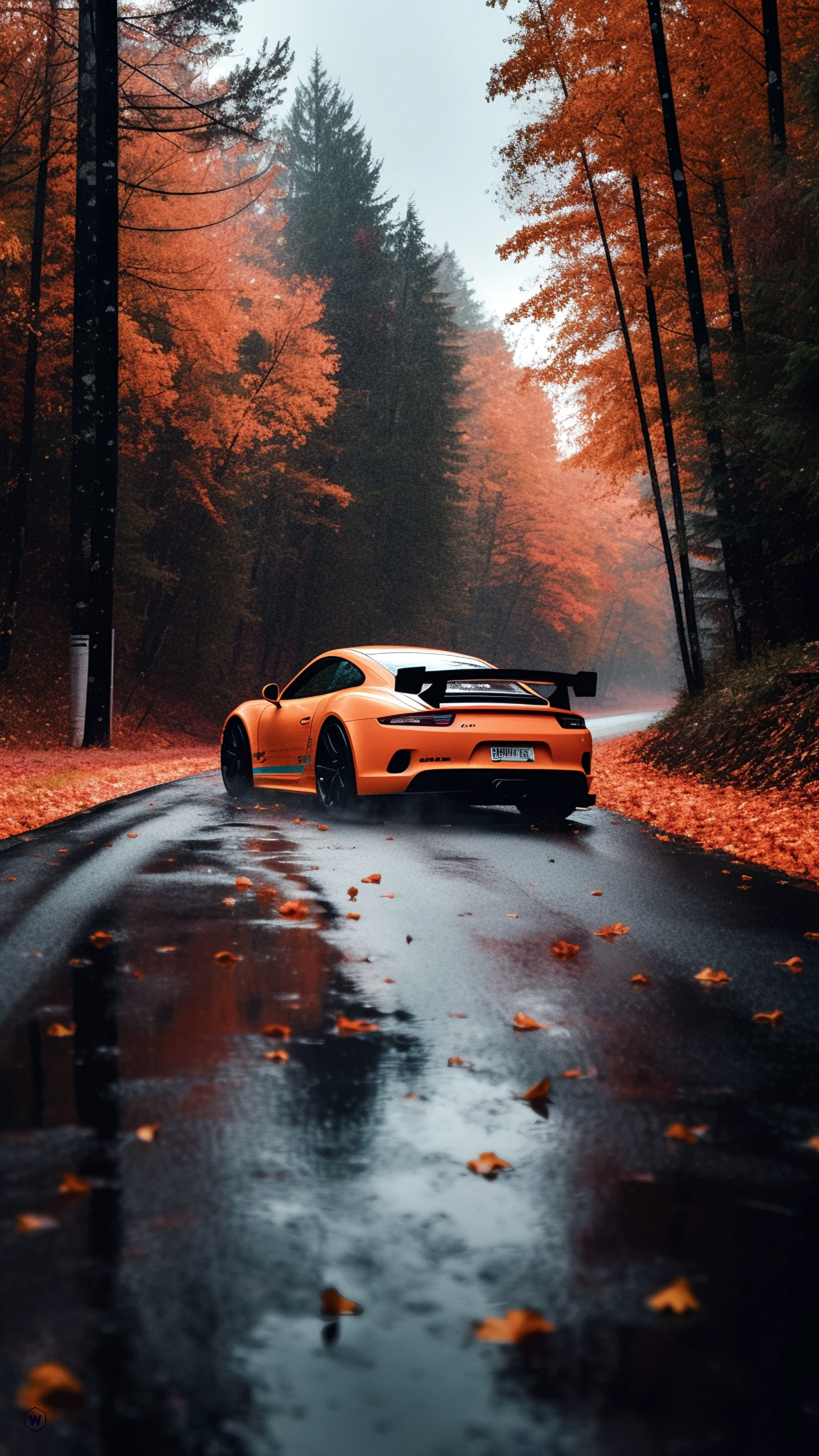 والپیپر ماشین پورشه 911 نارنجی با تم پاییزی برای موبایل با کیفیت 8k